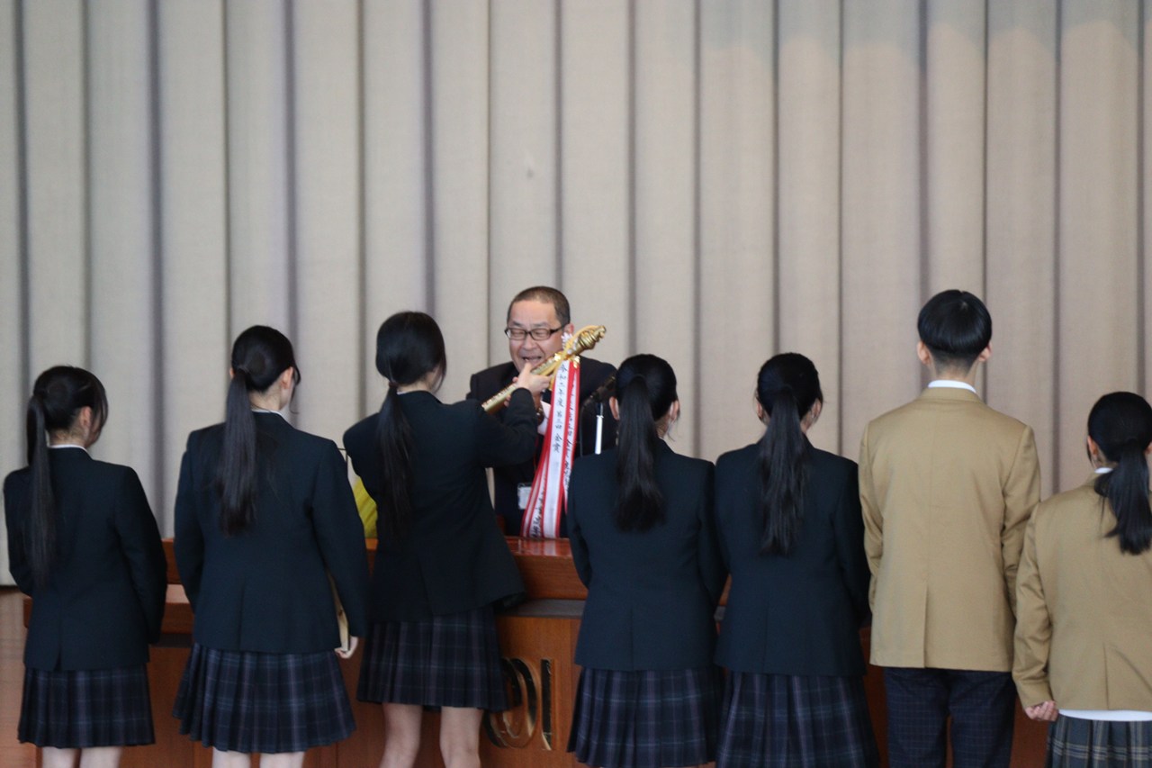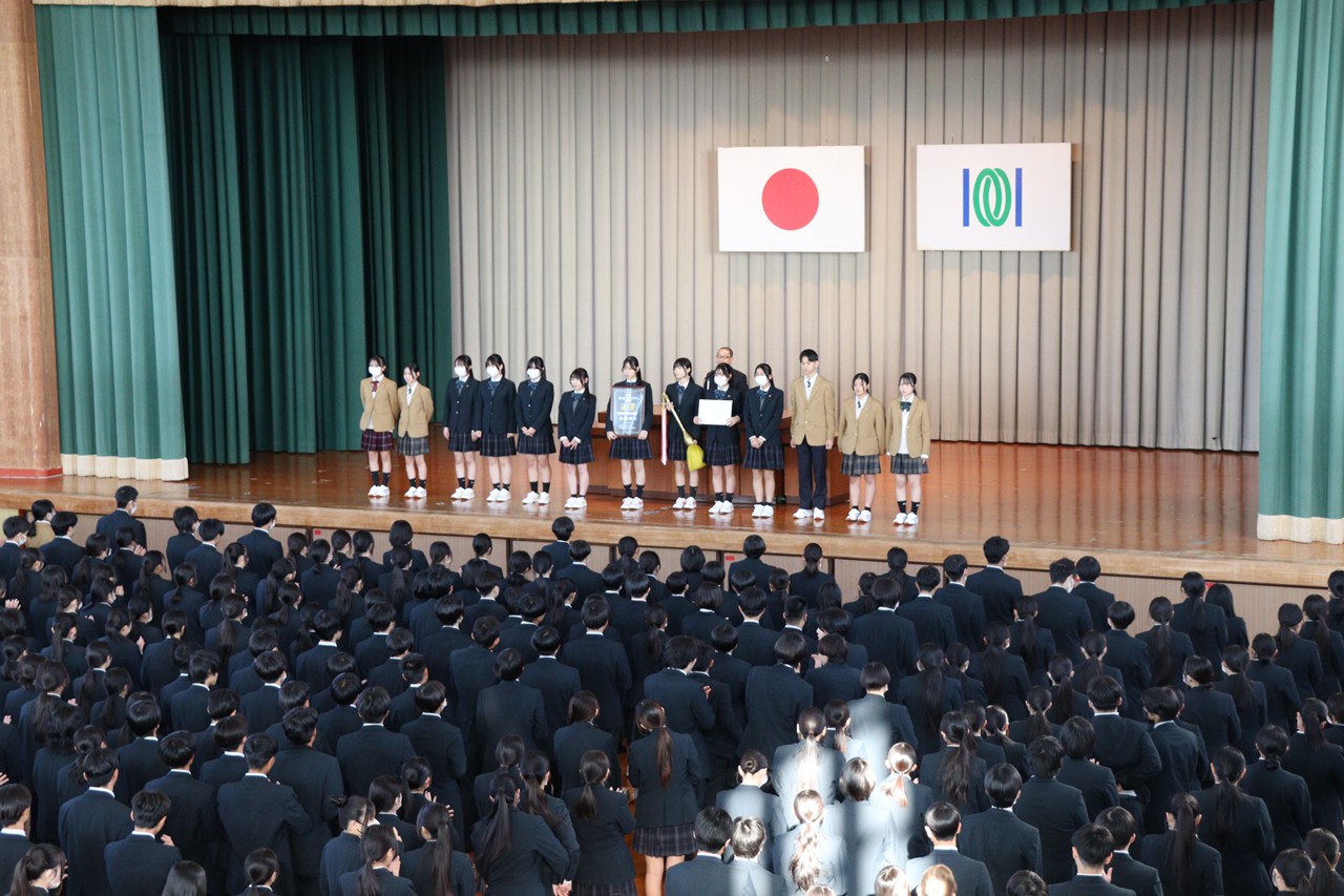 全校集会後には、『第8回 静岡書道パフォーマンスアワード2025にて金賞【優勝】』及び『第5回 全国高等学校書道パフォーマンスグランプリ九州沖縄大会にて準優勝』を獲得した書道部の表彰式も行われました。第8回 静岡書道パフォーマンスアワード2025では、大会過去最高得点での金賞となりました。書道部の皆さん、おめでとうございます。