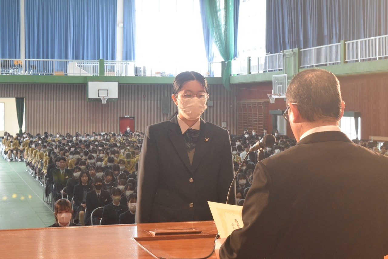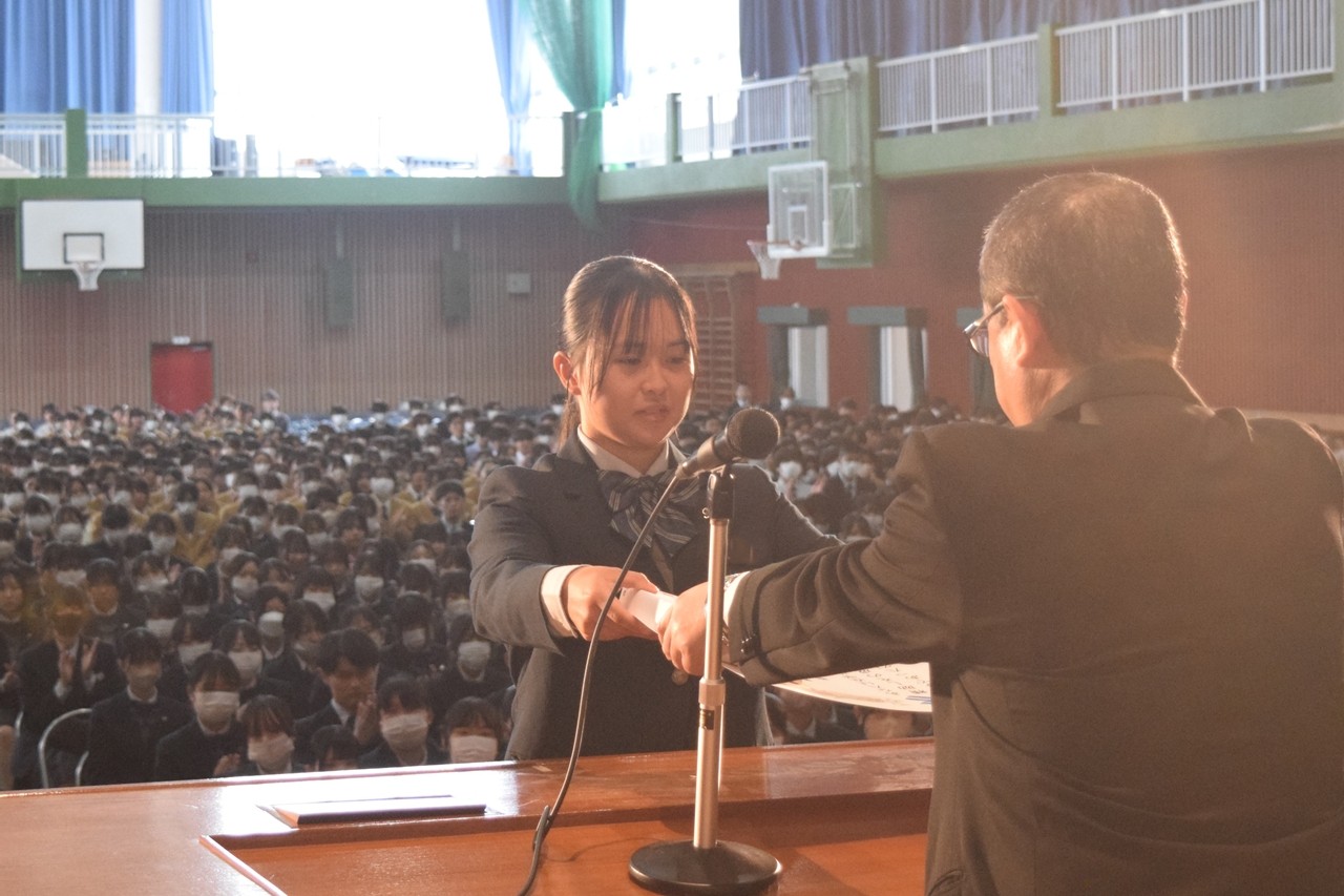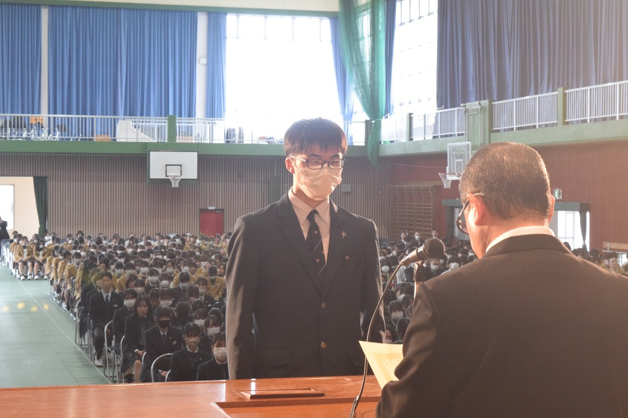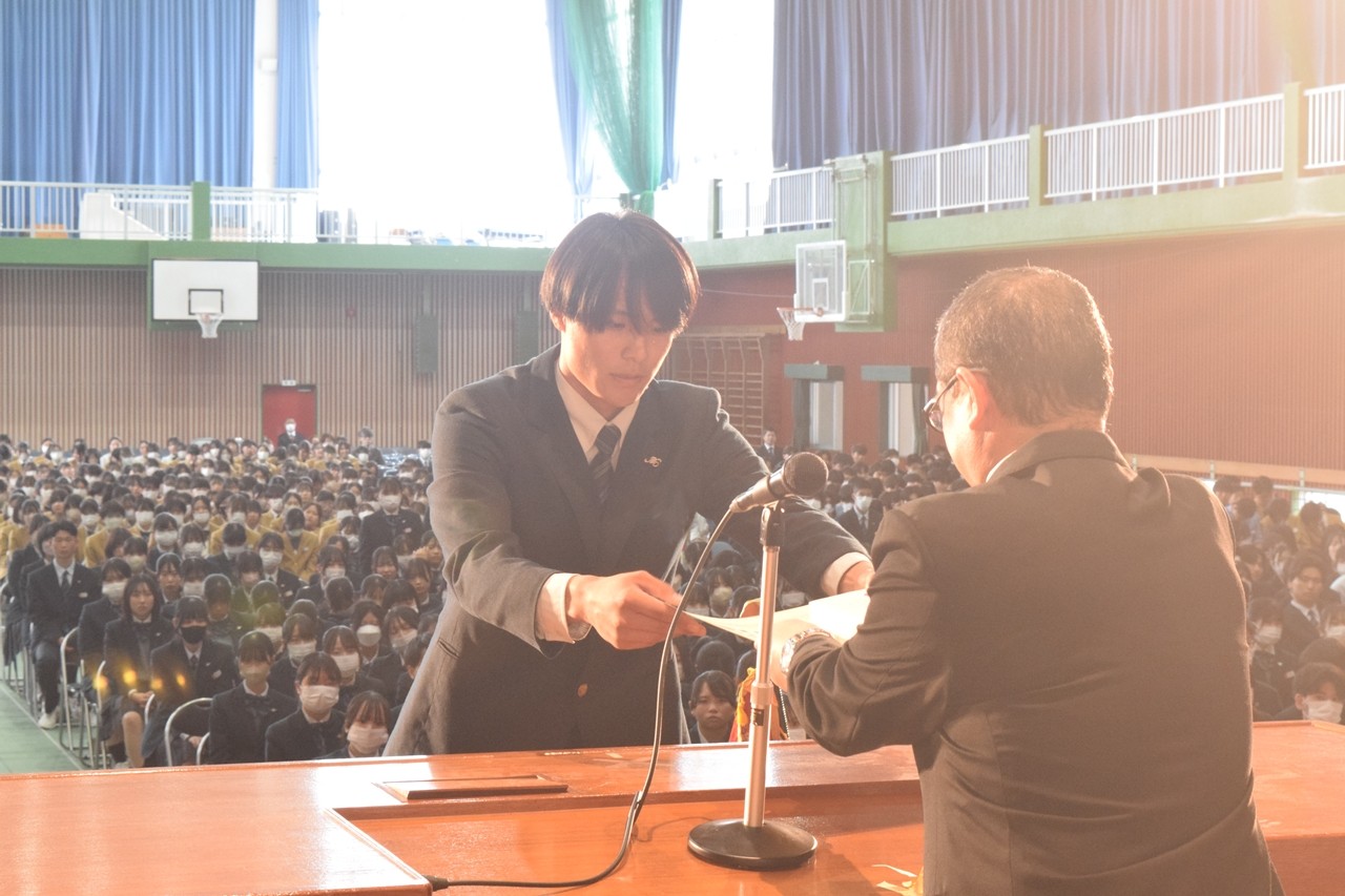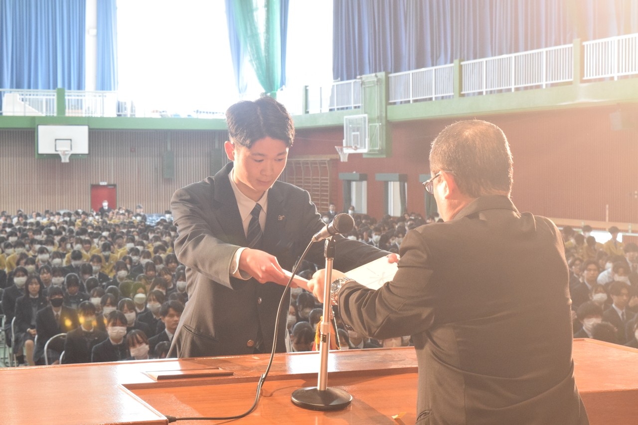 「令和7年度 表彰式」では、卒業生のうち、学業その他に精を出した優秀な生徒に賞が与えられました。