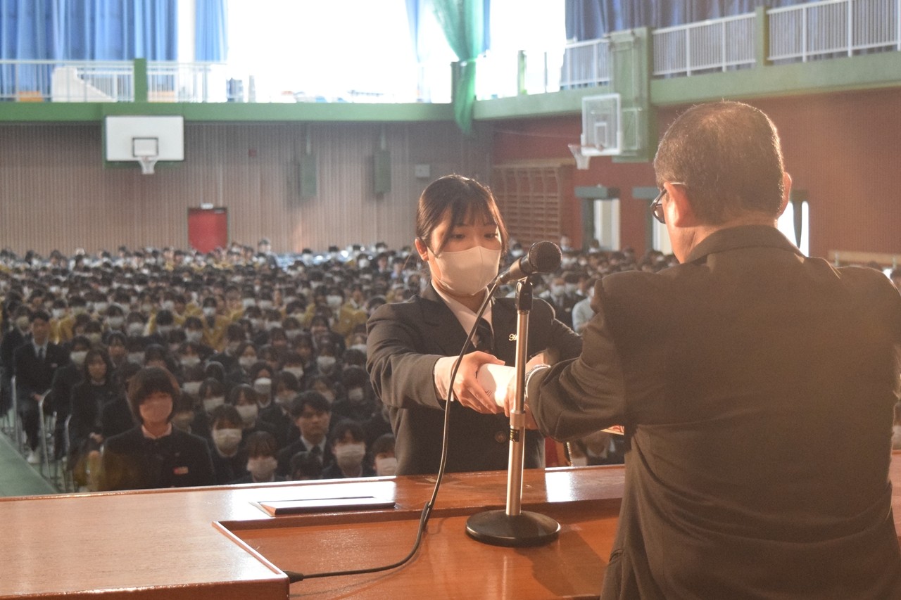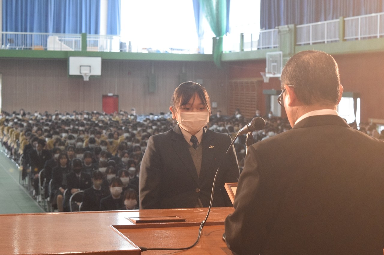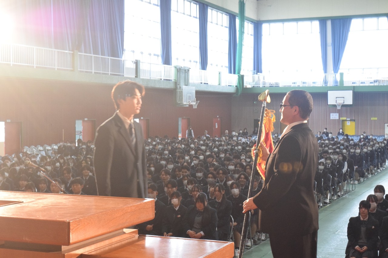 本日(2月26日)は午前に卒業式の予行、午後からは「令和7年度 表彰式」及び「学年旗返還」が行われました。