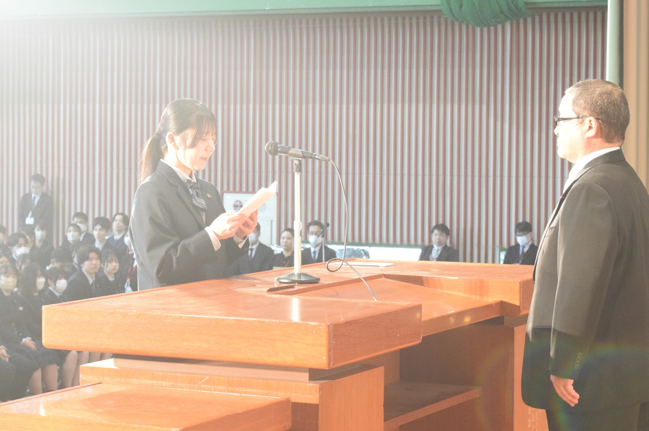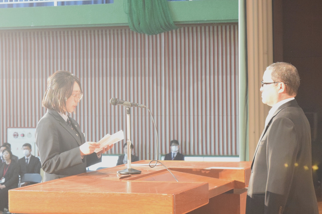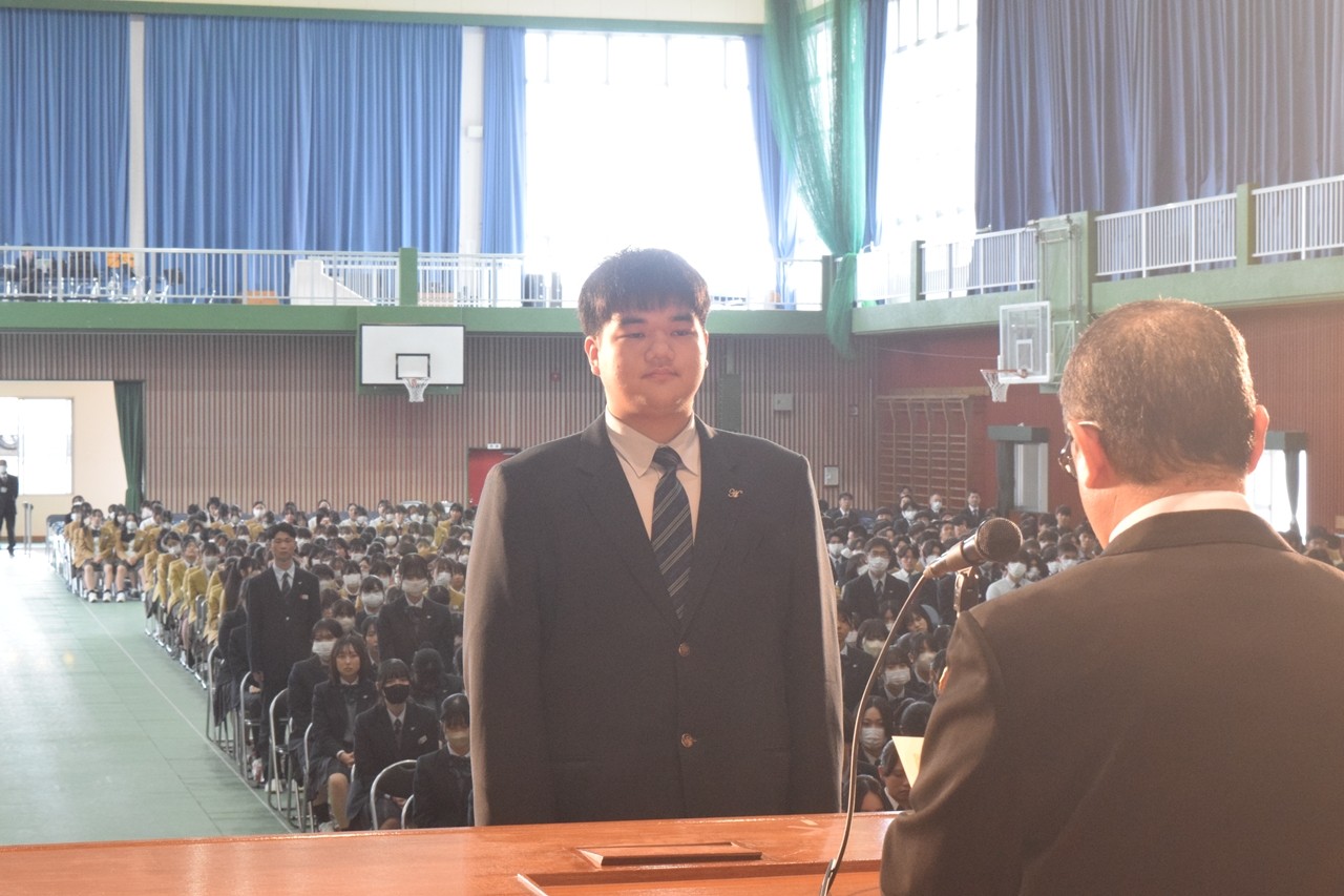 本日(2月26日)は午前に卒業式の予行、午後からは「令和7年度 表彰式」及び「学年旗返還」が行われました。