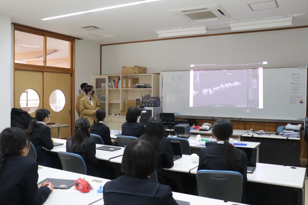 また授業の終盤には、中学生に向けて本校生徒たちが今取り組んでいることなどの高校での学びについて発表をおこないました。中学生も真剣に聞いていただき、とても良い時間にすることができました。