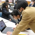 未来探究コースとビジネス探究コースから生徒1名ずつ協力をいただき、中学生のサポートをおこないました。