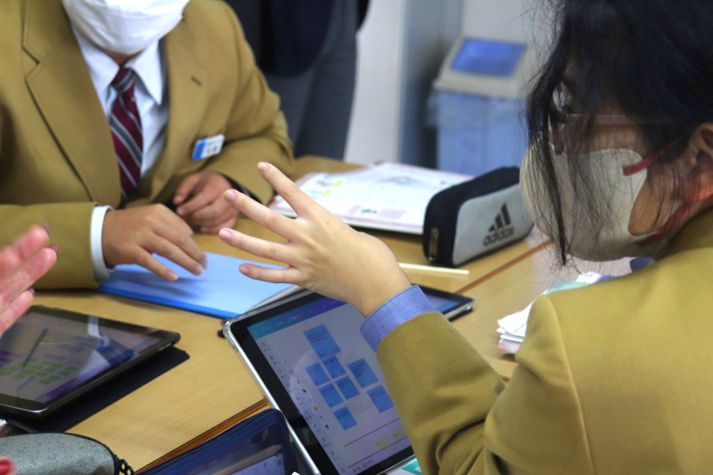 普段からiPadでAIやCanvaを使いこなしている生徒たちは,授業担当者の樋渡先生のファリシテーションをもとに話し合い活動を実施。
