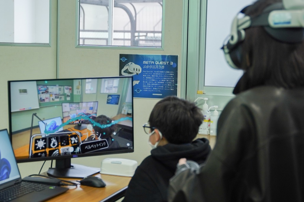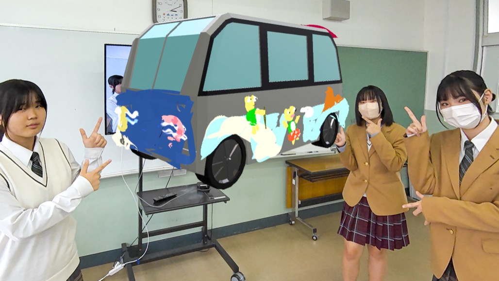 生徒たちは探究の時間にMeta Quest3を活用してバーチャル空間上でバスのラッピングデザインを考え、イメージを膨らませて実際のデザインの参考にしました。