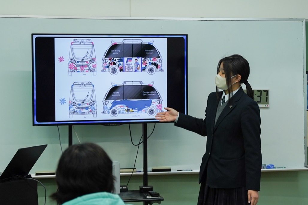 探究の時間で考えたデザインは、実際に今年度の自動運転バスのデザインに採用をしていただいています。