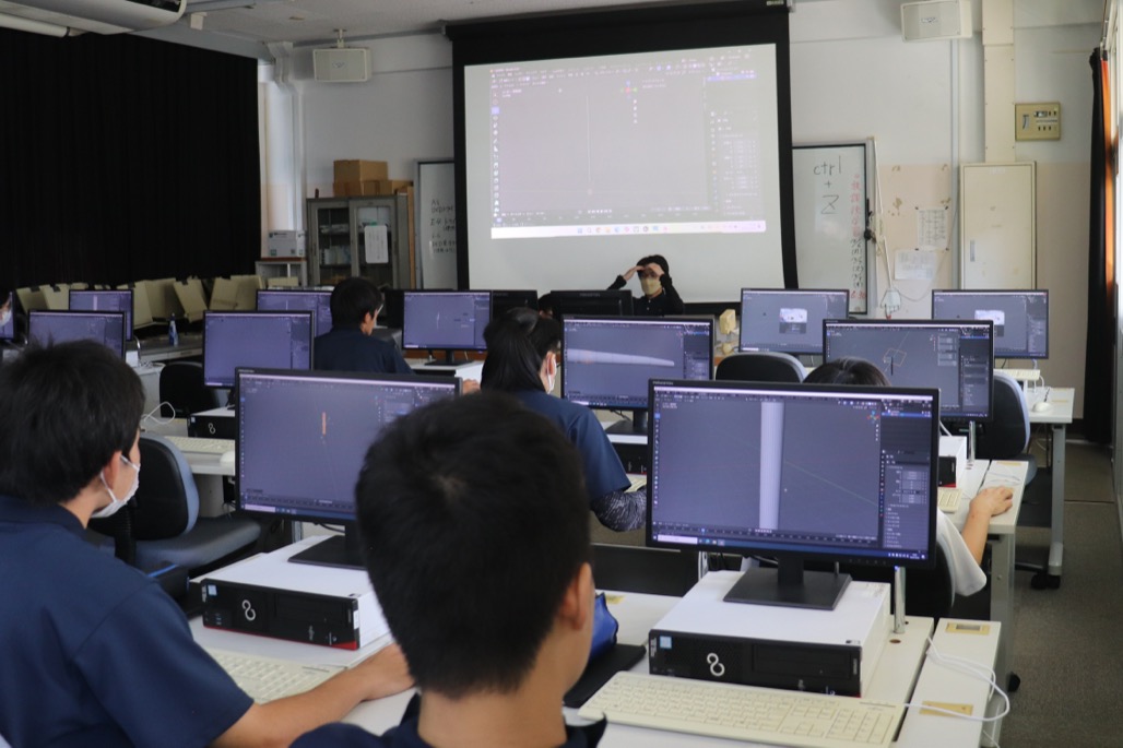 探究活動では再度加藤さんにも来校いただき、プロも使用する3DCGソフト「Blender」などにも挑戦をしました。